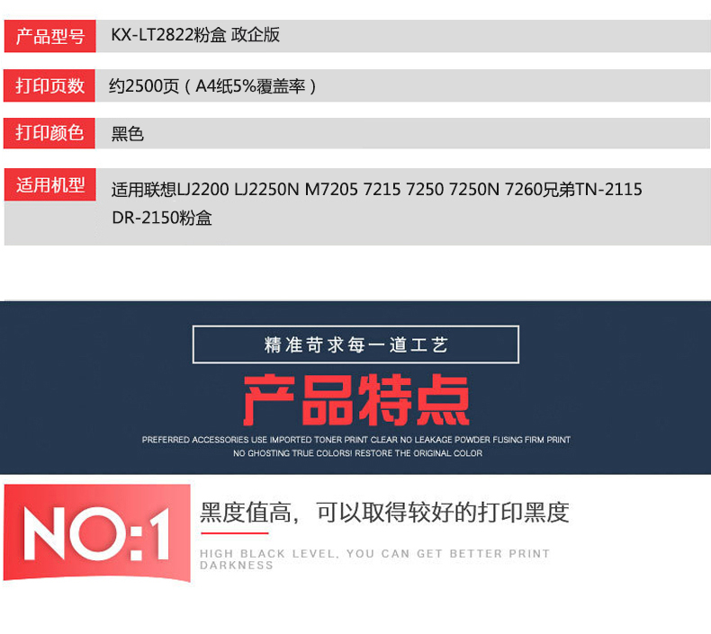 凱欣政企版 KX-LT2822 粉盒 適用聯(lián)想LJ2200 LJ2250N M7205 7215 7250 7250N 7260兄弟TN-2115 DR-2150粉盒 全國統(tǒng)一價:136元