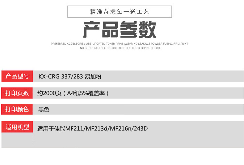 凱欣政企版 KX-CRG 337283 硒鼓 適用于佳能MF211MF213dMF216n243D 全國統(tǒng)一價:130元