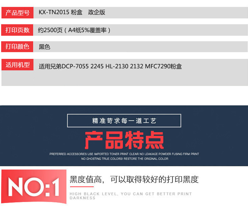 凱欣KX-TN2015 KX-2015粉盒適用兄弟DCP-7055 2245 HL-2130 2132 MFC7290 全國(guó)統(tǒng)一價(jià):169元