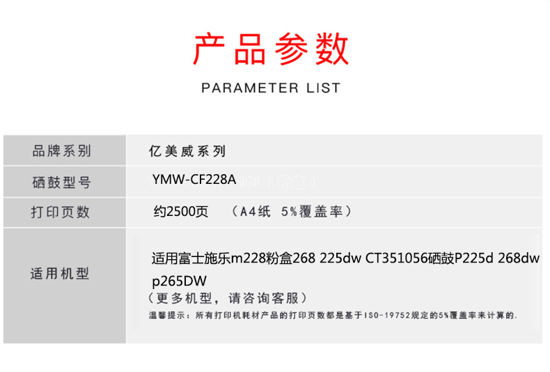 億美威 YMW-CF228A 惠普 M403D /427DW/M1120/M1522 全國統(tǒng)一價:178元