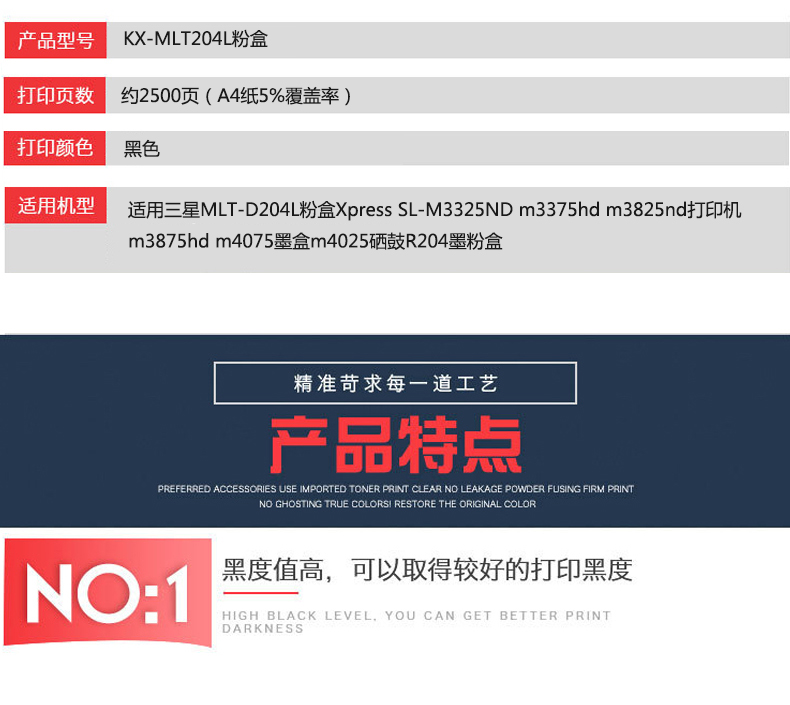 凱欣標(biāo)準(zhǔn)版MLT204L粉盒適用三星MLT-D204L Xpress SL-M3325ND m3375hd m3825nd打印機(jī)m3875hd 全國(guó)統(tǒng)一價(jià):186元
