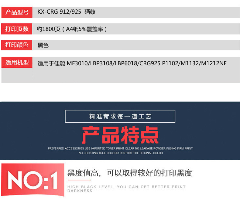 凱欣標(biāo)準(zhǔn)版 KX-CRG912/925硒鼓 適用于佳能 MF3010/LBP3108/LBP6018/CRG925 惠普P1102全國(guó)統(tǒng)一價(jià):126元